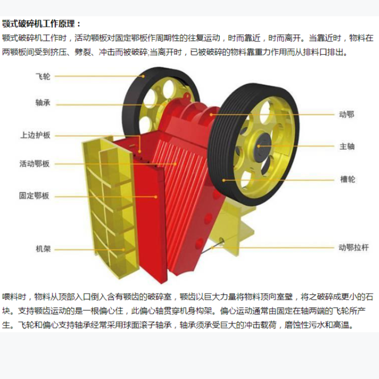顎式破碎機(jī)主要用于對(duì)原材料的中碎和細(xì)碎,破碎方式為曲動(dòng)擠壓式,具有破碎比大、產(chǎn)品粒度均勻、結(jié)構(gòu)簡(jiǎn)單、工作可靠、維護(hù)簡(jiǎn)便、運(yùn)營(yíng)費(fèi)用經(jīng)濟(jì)等特點(diǎn)。廣泛運(yùn)用于礦山、冶煉、建材、公路、水利和化學(xué)工業(yè)等眾多部門,破碎抗壓強(qiáng)度不超過(guò)320兆帕的各種物料。