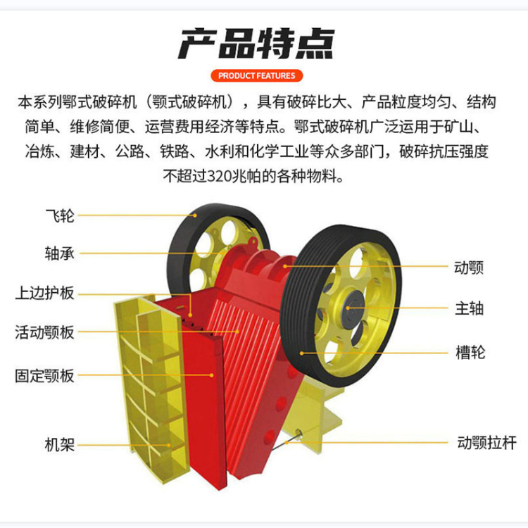 顎式破碎機(jī)俗稱老虎口、鄂破,占據(jù)了破碎設(shè)備中的重要地位,主要適用于各種礦石與大塊物料,在破碎生產(chǎn)線中打頭陣,進(jìn)行粗、中碎作業(yè),具有運(yùn)轉(zhuǎn)穩(wěn)定、破碎比大、綠色環(huán)保、耗能量低、使用壽命長(zhǎng)等優(yōu)勢(shì),所以適用范圍被打開,領(lǐng)域也由單一的礦山拓展到建材、公路、鐵路、水利和化學(xué)工業(yè)等眾多部門。
