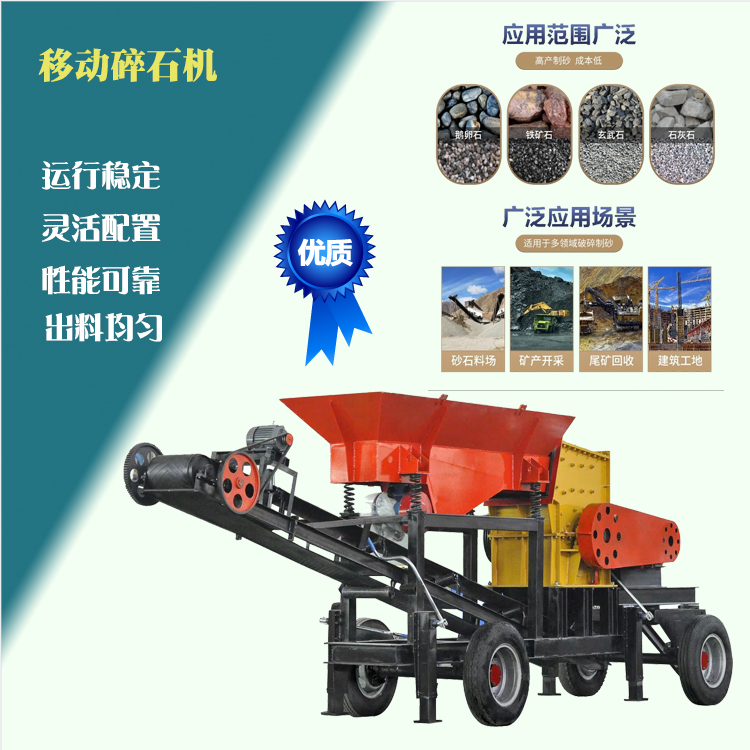 簡易移動破碎機(jī)是一款體積相對較小、靈活性較強(qiáng)、重量較輕的碎石設(shè)備,適用于建筑垃圾、花崗巖、玄武巖、石灰?guī)r等物料的破碎加工,在工業(yè)領(lǐng)域中的應(yīng)用十分靈活,產(chǎn)量及碎石效率高,所以頗受消費(fèi)者青睞與歡迎。 簡易移動破碎機(jī)的出現(xiàn)直戳用戶的需求,一機(jī)多用、功能齊全。簡易移動破碎機(jī)就是一條集給料、破碎、篩分