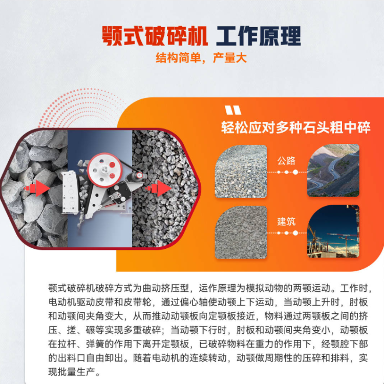 礦山機(jī)械作為國(guó)家支持的發(fā)展產(chǎn)業(yè),近年來(lái)已經(jīng)得到很大的發(fā)展與提高,涌現(xiàn)出具有國(guó)際先進(jìn)水平的機(jī)械以供煤炭,金屬和非金屬礦山的開(kāi)發(fā),從而達(dá)到國(guó)民經(jīng)濟(jì)對(duì)能源和原材料的發(fā)展需要。 礦山機(jī)械的主要產(chǎn)品是破碎機(jī),而鄂式破碎機(jī)是其中比較受歡迎的機(jī)種。鄂式破碎機(jī)主要用于對(duì)原材料的中碎和細(xì)碎,破碎方式為曲動(dòng)擠壓式,具