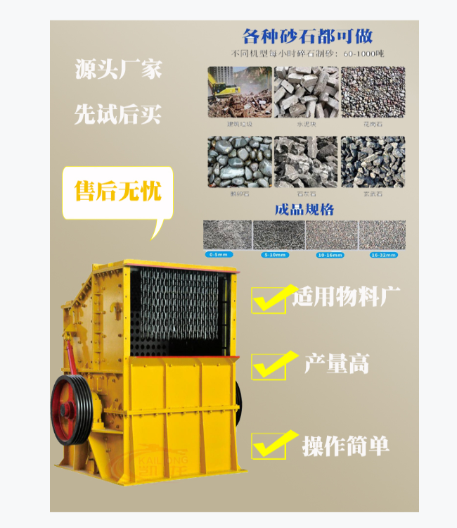 1210反擊破是用戶需求比較多的一款破碎機(jī) ,主要是用于對石料的中細(xì)碎加工作業(yè);多用于生產(chǎn)線二級破碎階段,常見搭配組合為“鄂破+反擊破”;把粗碎之后的石料再次細(xì)碎處理,通過調(diào)節(jié)粒度裝置使其達(dá)到符合生產(chǎn)標(biāo)準(zhǔn)的建筑石子需求;同時還可以增加一臺沖擊式制砂機(jī),生產(chǎn)機(jī)制砂;這幾種客戶現(xiàn)場案例由1210反擊破搭配組成。